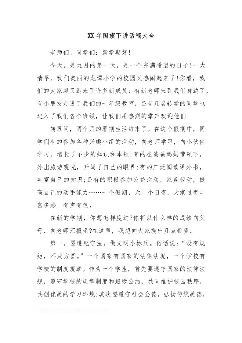 首页国旗下讲话综合讲话XX年国旗下讲话稿大全[推荐]