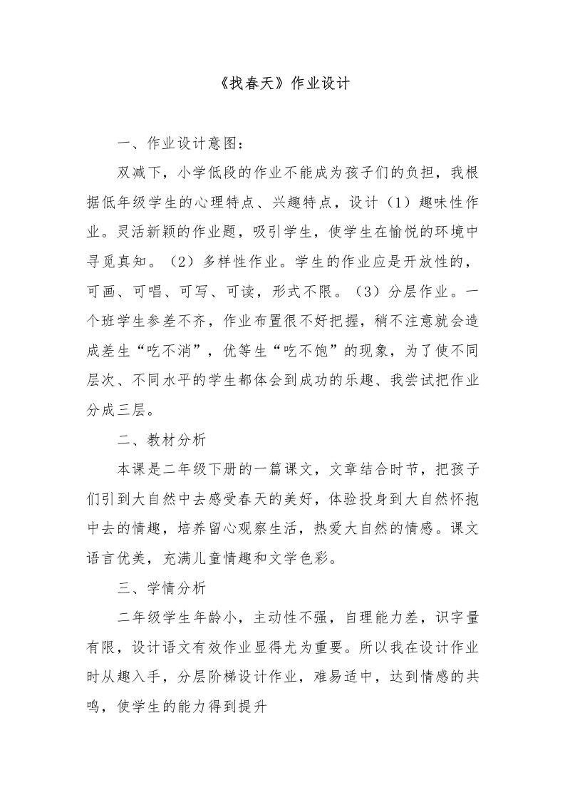 首页教研资料作业设计“双减”小学语文《找春天》优秀作业设计