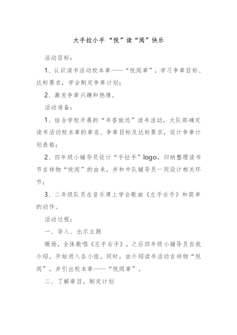 首页少队资料活动方案38-大手拉小手 “悦”读“阅”快乐