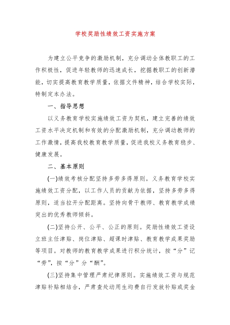 学校奖励性绩效工资实施方案