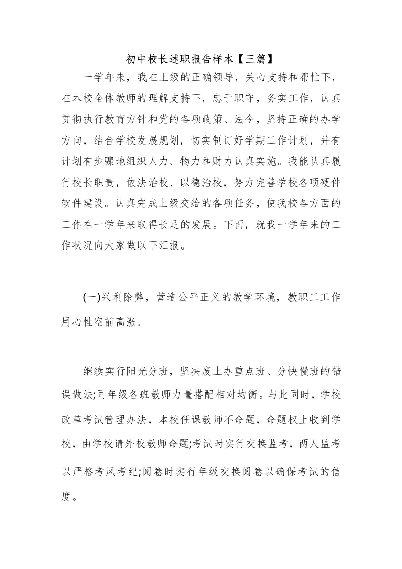 初中校长述职报告样本【三篇】