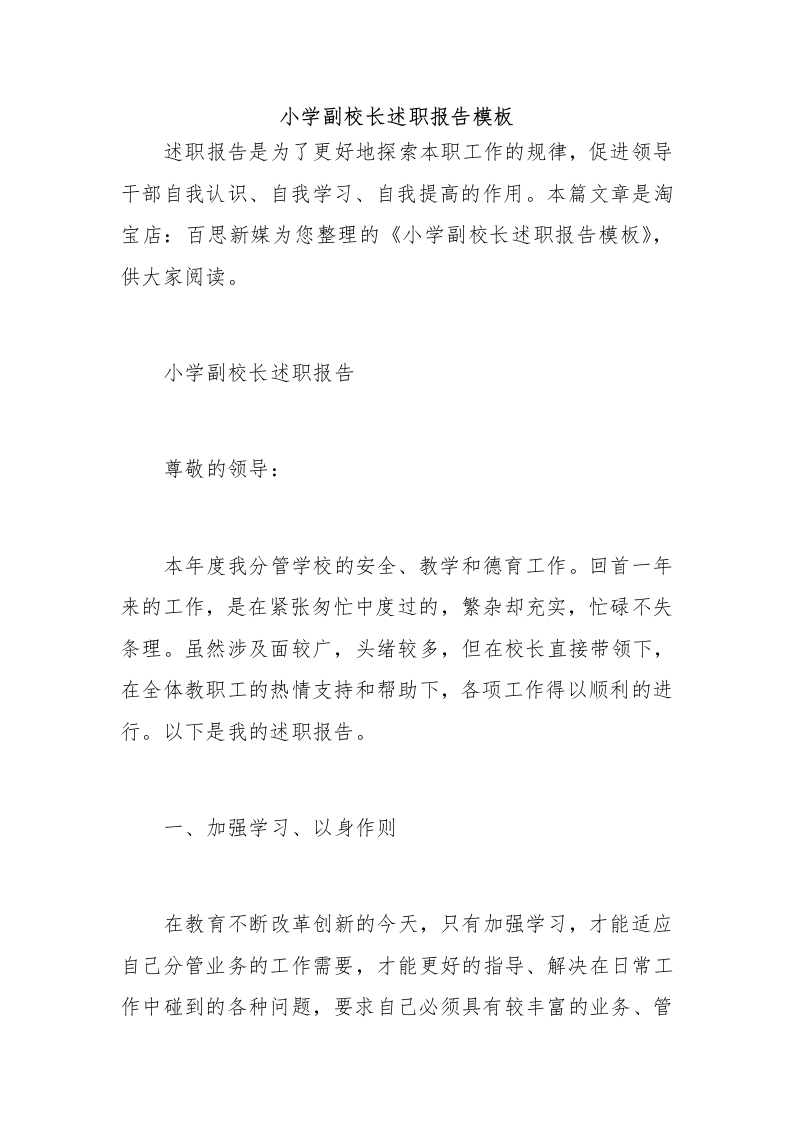 小学副校长述职报告模板