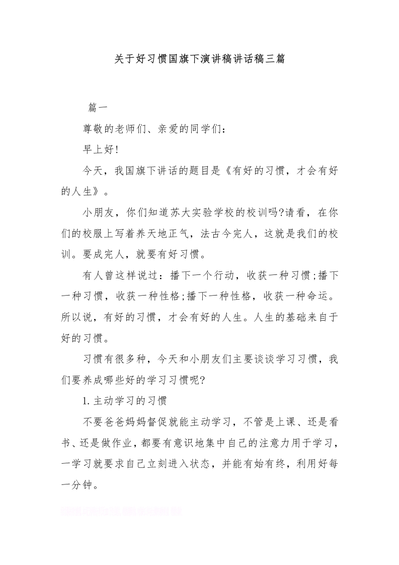 关于好习惯国旗下演讲稿讲话稿三篇[推荐]