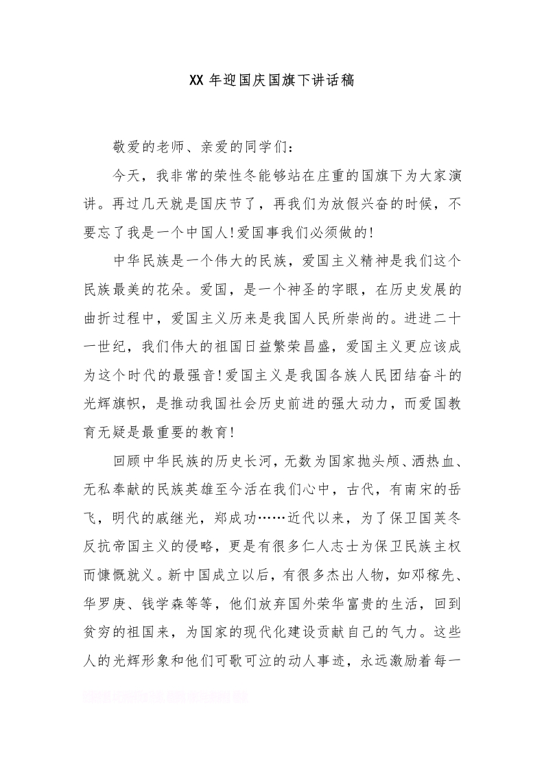 XX年迎国庆国旗下讲话稿[推荐]