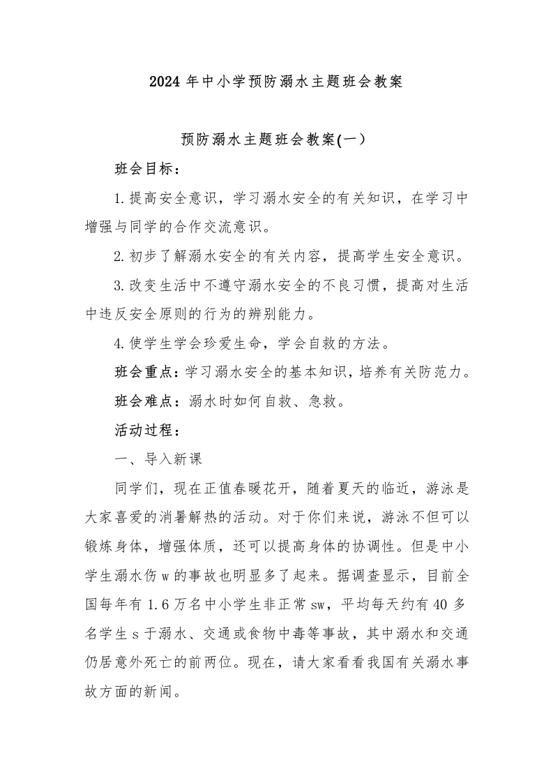 首页主题节日主题活动17.2024年中小学预防溺水主题班会教案
