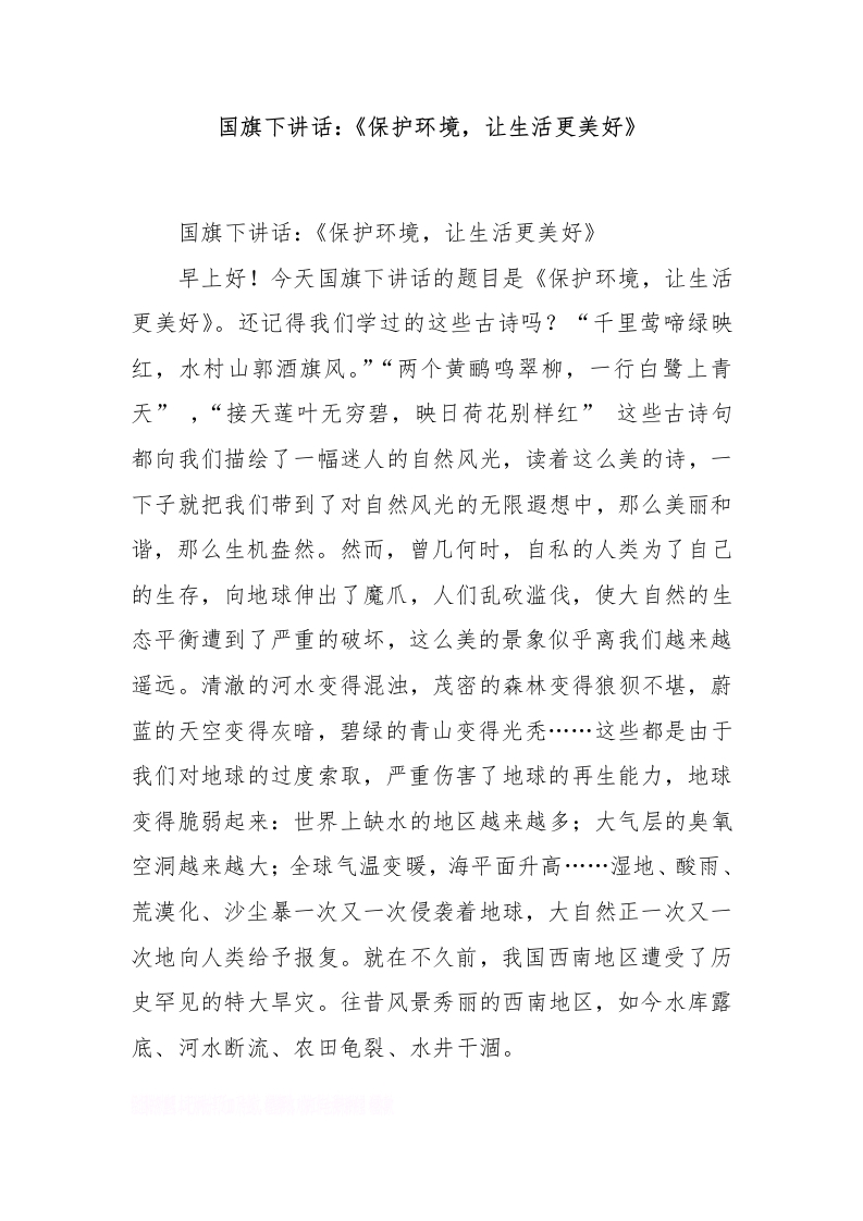 国旗下讲话:《保护环境,让生活更美好》[推荐]