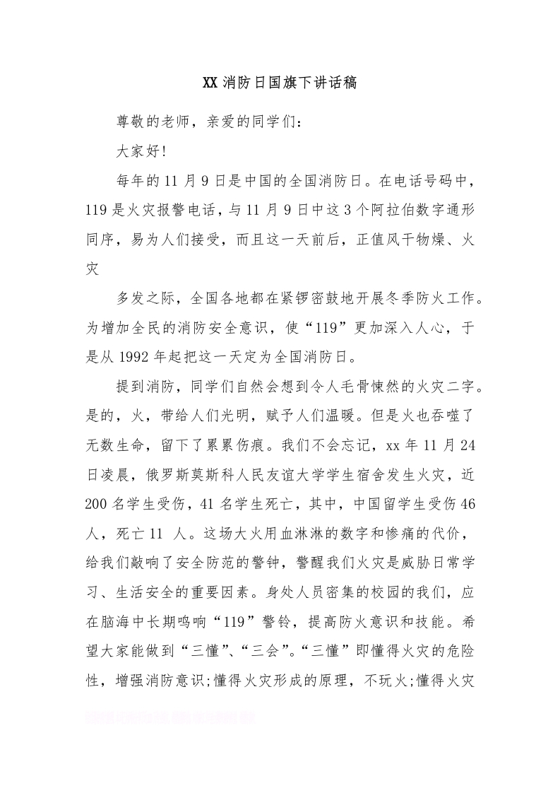 首页主题节日主题活动XX消防日国旗下讲话稿[推荐]