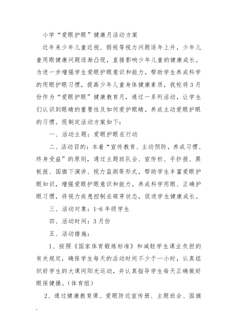 爱眼护眼健康活动方案