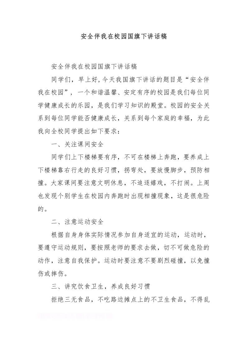 首页主题节日主题活动安全伴我在校园国旗下讲话稿[推荐]