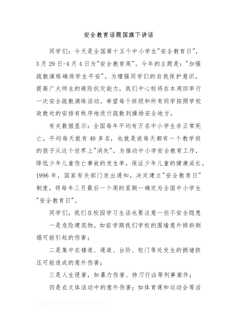首页主题节日主题活动安全教育话题国旗下讲话[推荐]