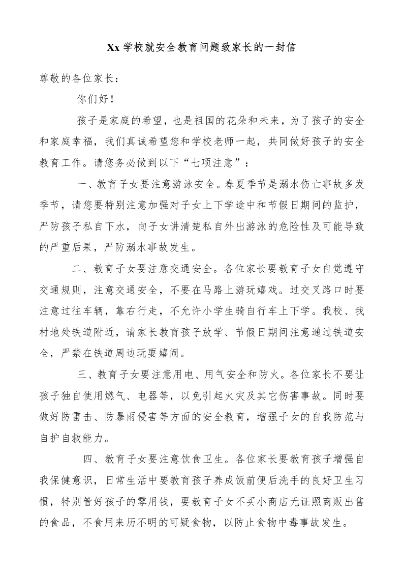 首页主题节日主题活动安全教育致家长的一封信 (1)