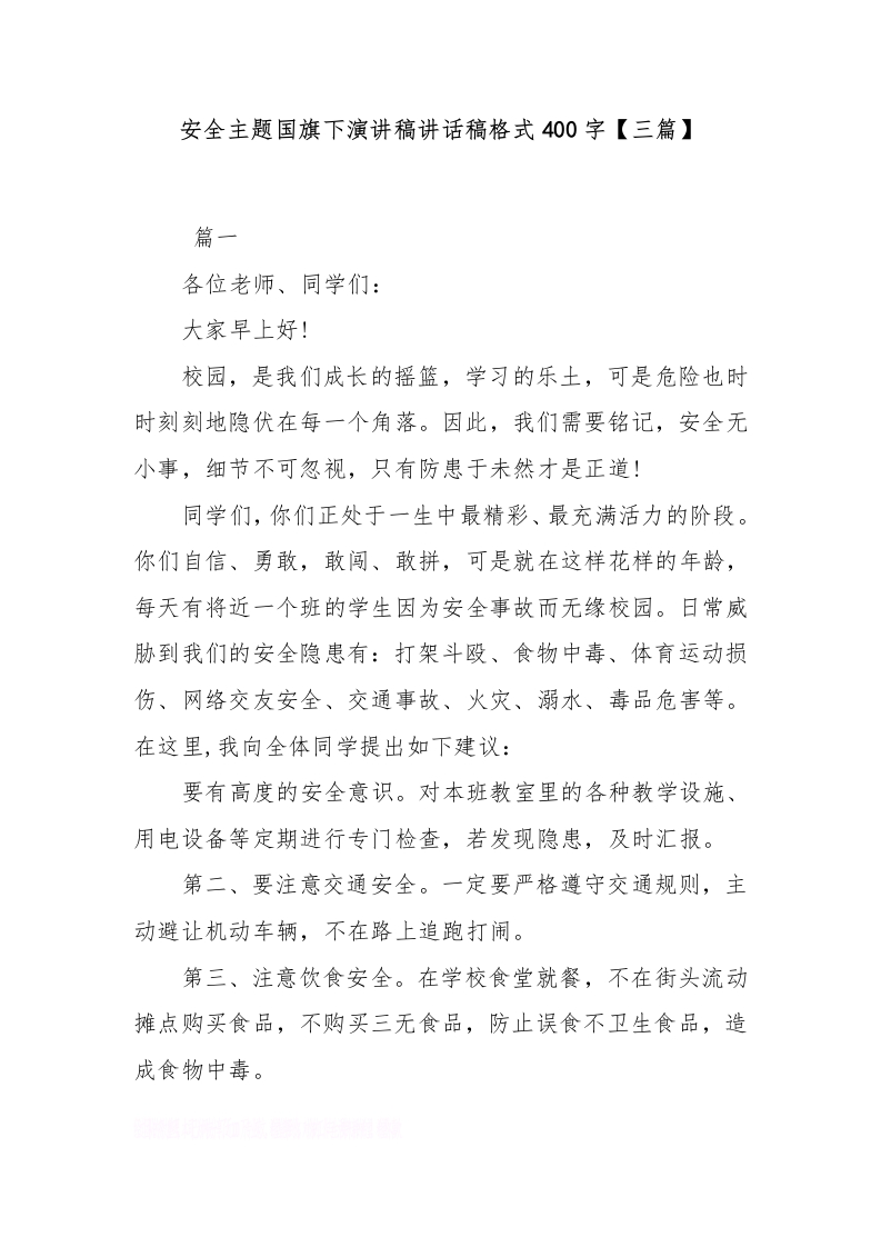 安全主题国旗下演讲稿讲话稿格式400字【三篇】[推荐]