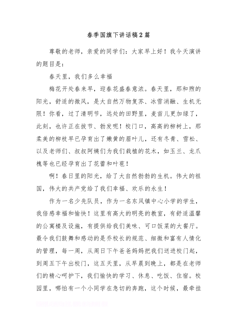 首页主题节日主题活动春季国旗下讲话稿2篇[推荐]