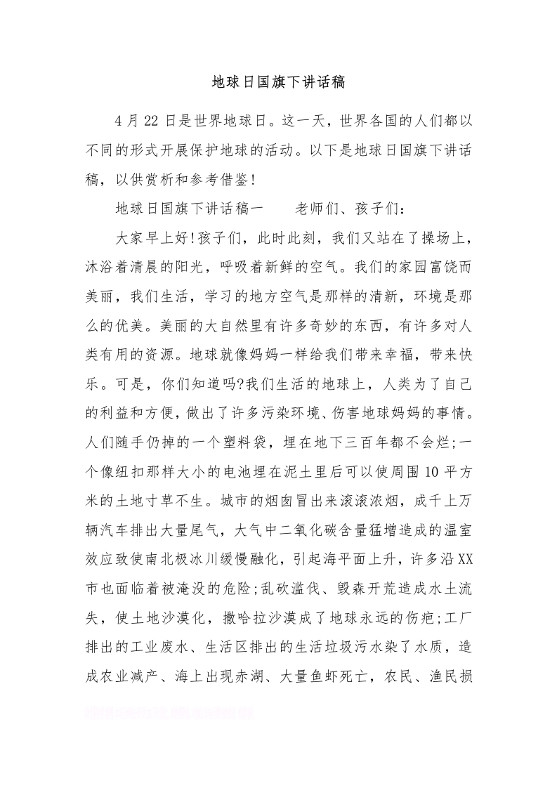 地球日国旗下讲话稿[推荐]