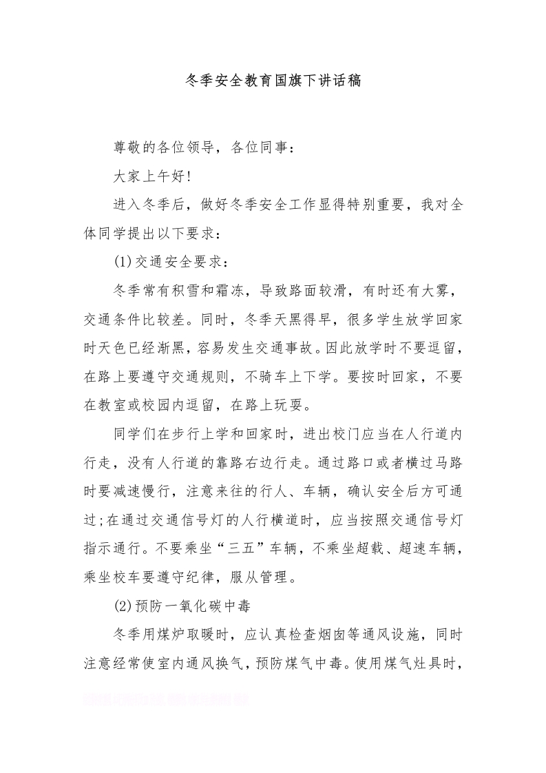 首页主题节日主题活动冬季安全教育国旗下讲话稿[推荐]