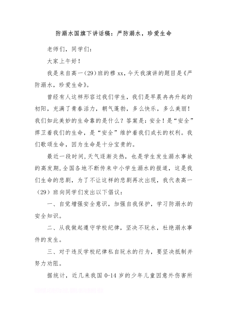 防溺水国旗下讲话稿:严防溺水,珍爱生命[推荐]