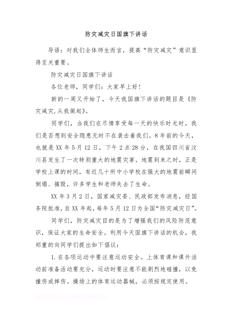 首页主题节日主题活动防灾减灾日国旗下讲话[推荐]