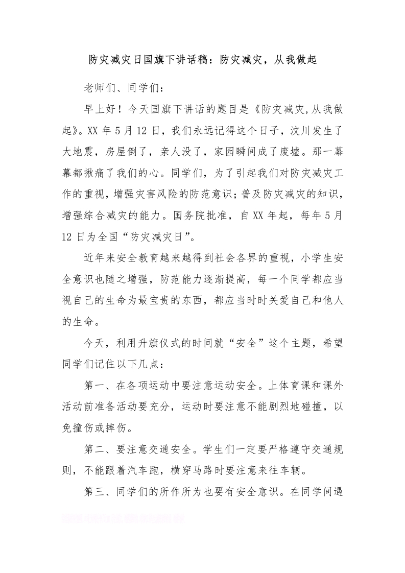 防灾减灾日国旗下讲话稿:防灾减灾,从我做起[推荐]