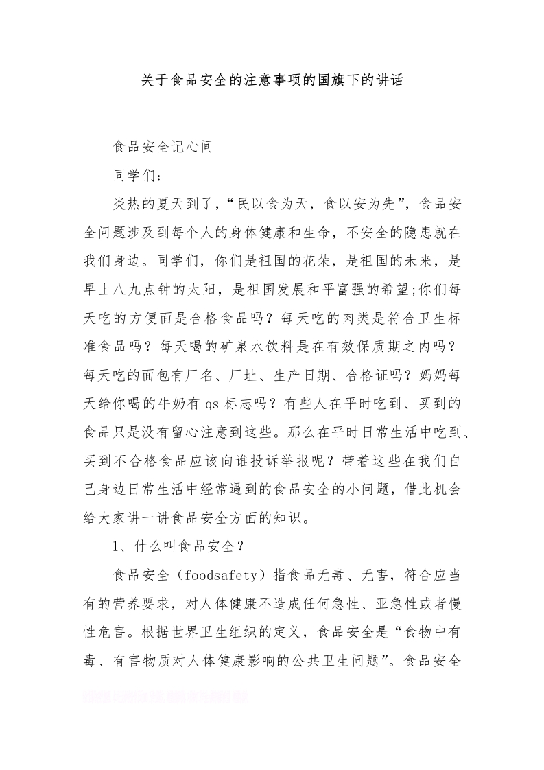 关于食品安全的注意事项的国旗下的讲话[推荐]