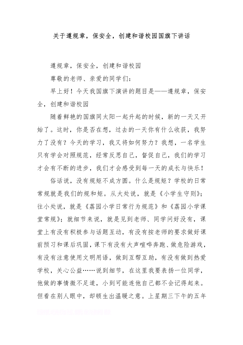 关于遵规章,保安全,创建和谐校园国旗下讲话[推荐]