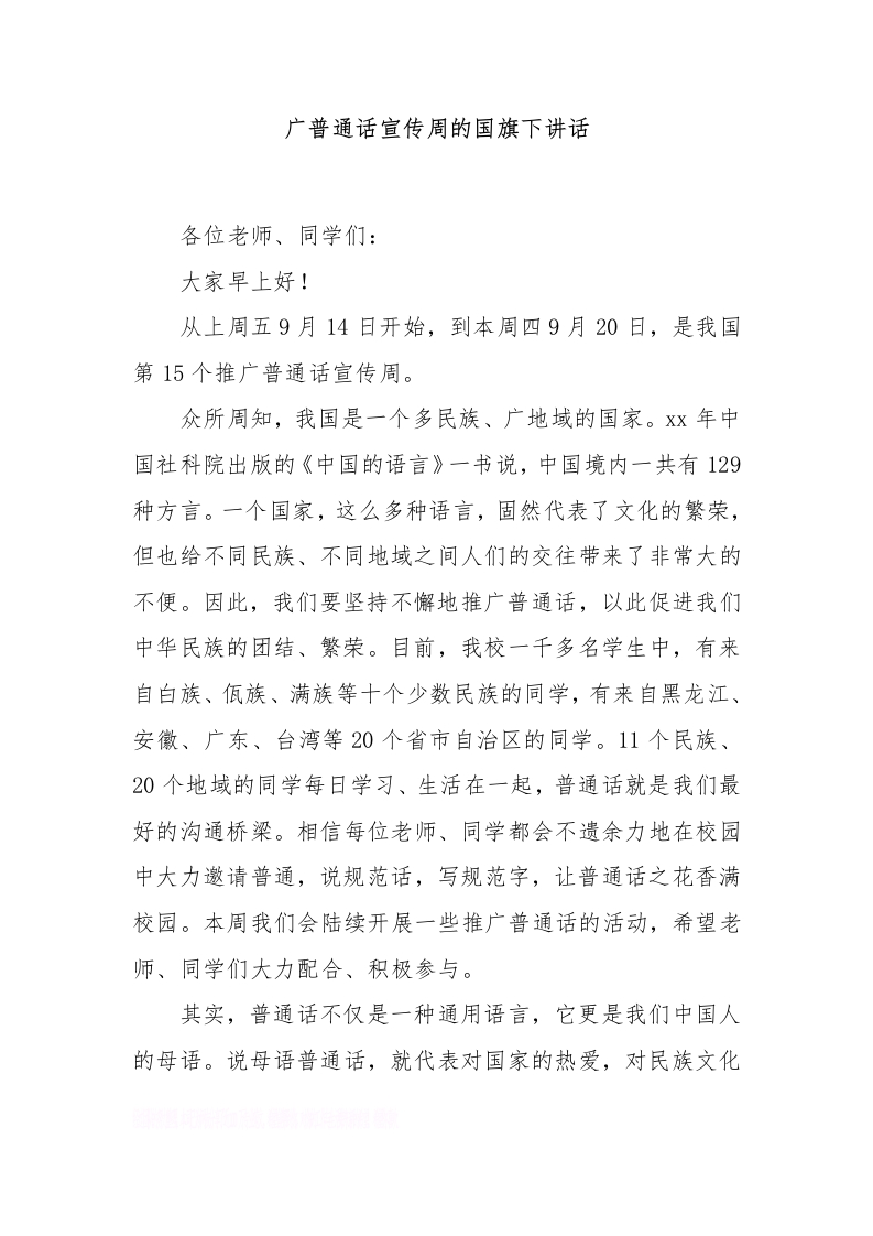 首页主题节日主题活动广普通话宣传周的国旗下讲话[推荐]