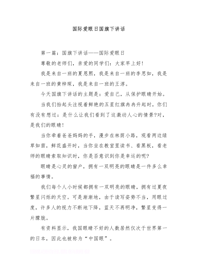 国际爱眼日国旗下讲话[推荐]