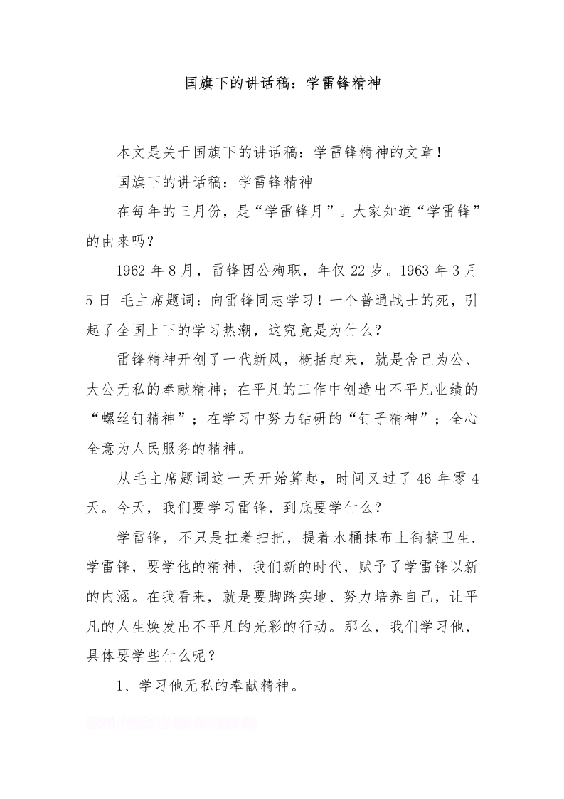 首页主题节日主题活动国旗下的讲话稿:学雷锋精神[推荐]