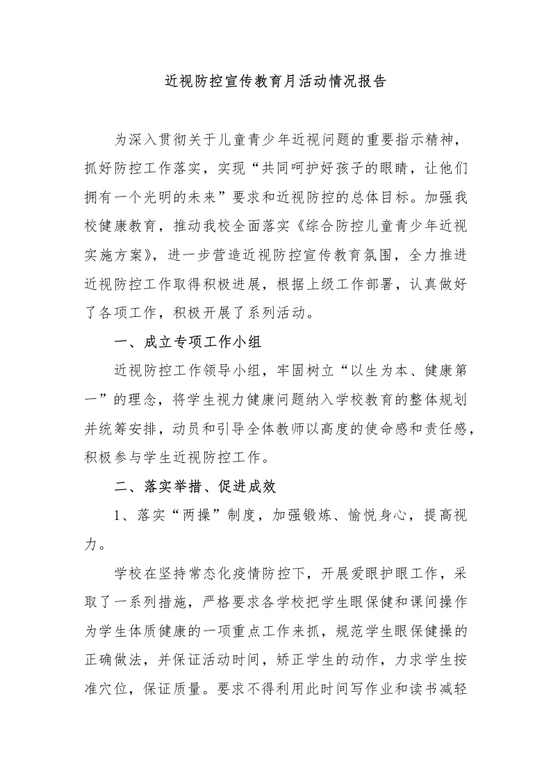 首页主题节日主题活动近视防控宣传教育月活动情况报告