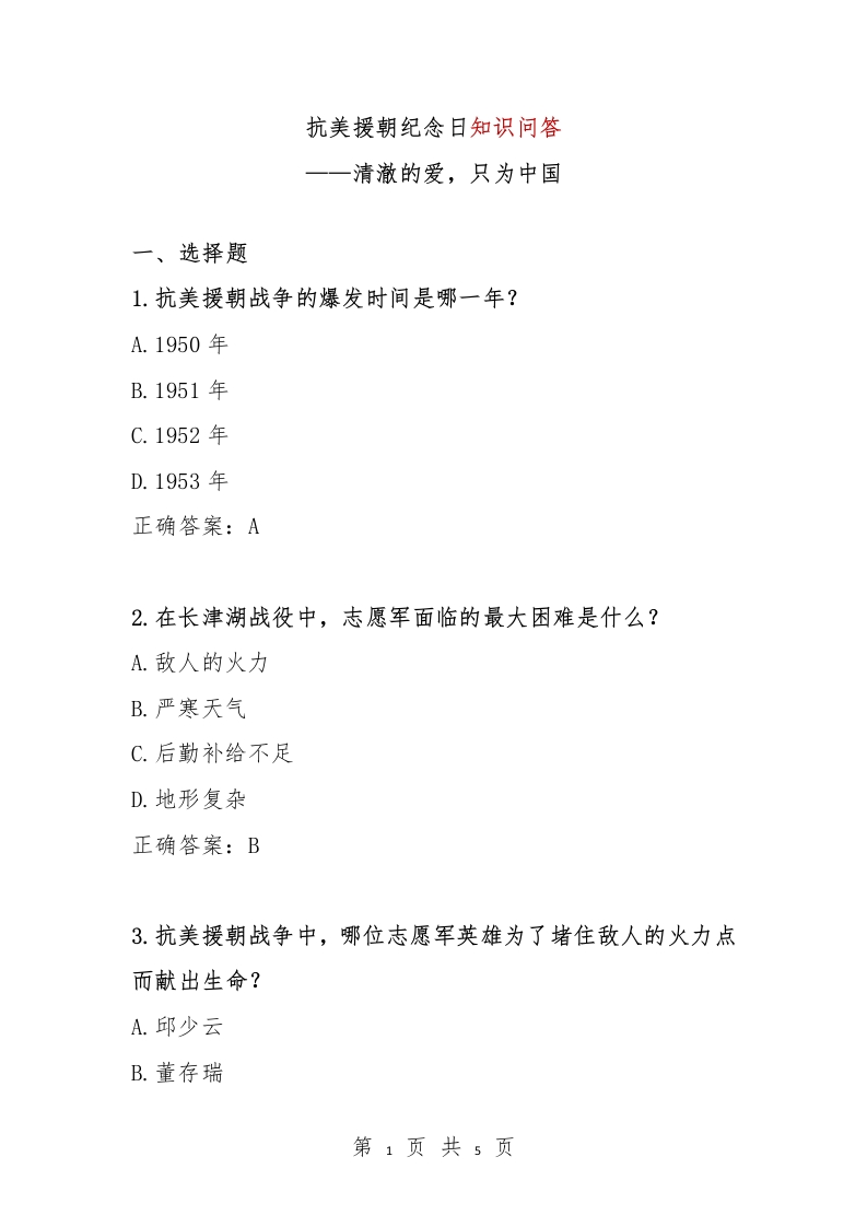 首页主题节日主题活动抗美援朝纪念日知识问答