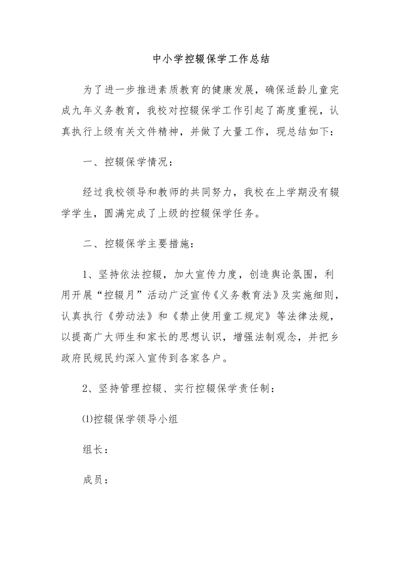 中小学控辍保学工作总结