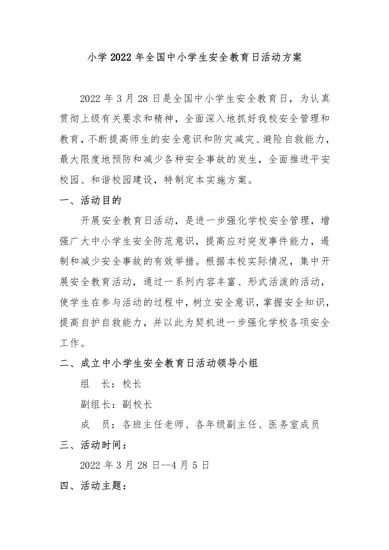 首页主题节日主题活动小学2022年全国中小学生安全教育日活动方案
