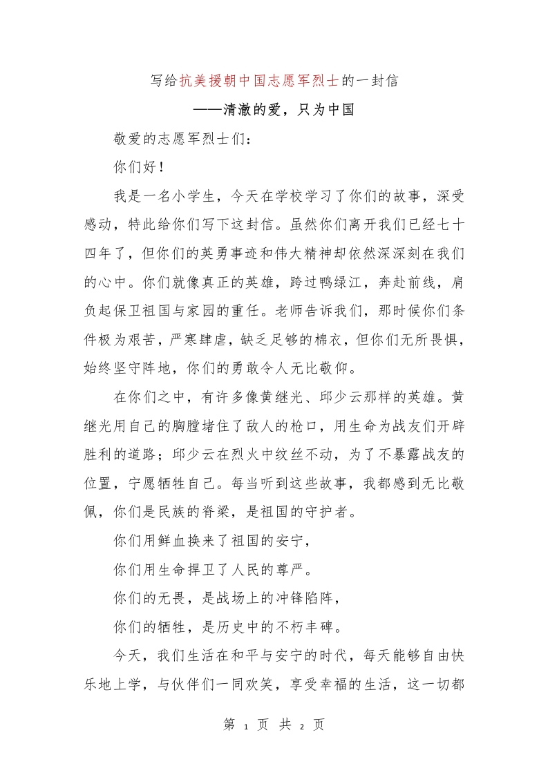 首页主题节日主题活动写给抗美援朝中国志愿军烈士的一封信