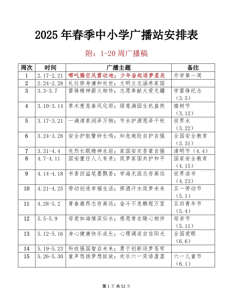 首页少队资料计划总结2025年——红领巾广播站安排表及讲话稿