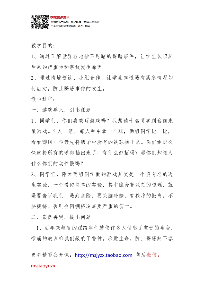小学安全教育《珍爱生命预防踩踏》[刘宇倩]【市级】优质课