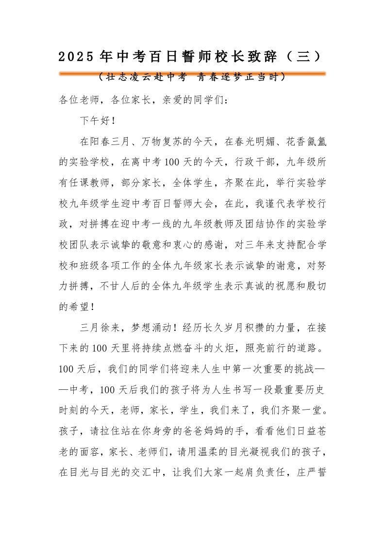首页开学散学百日誓师2025年中考百日誓师活动校长致辞(三)