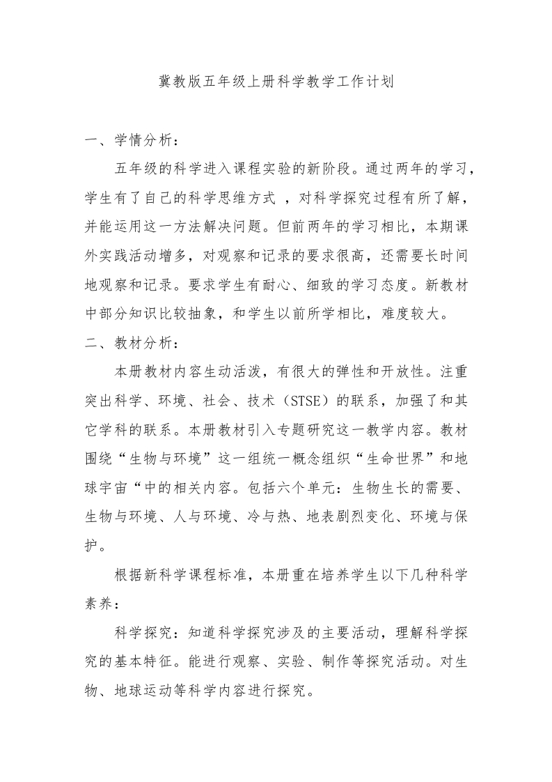 首页班主任资料计划总结冀教版五年级上册科学教学工作计划