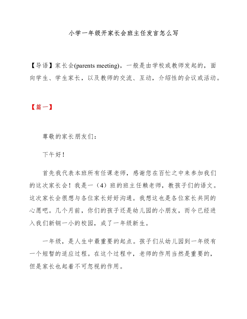 首页班主任资料家长家委小学一年级开家长会班主任发言怎么写