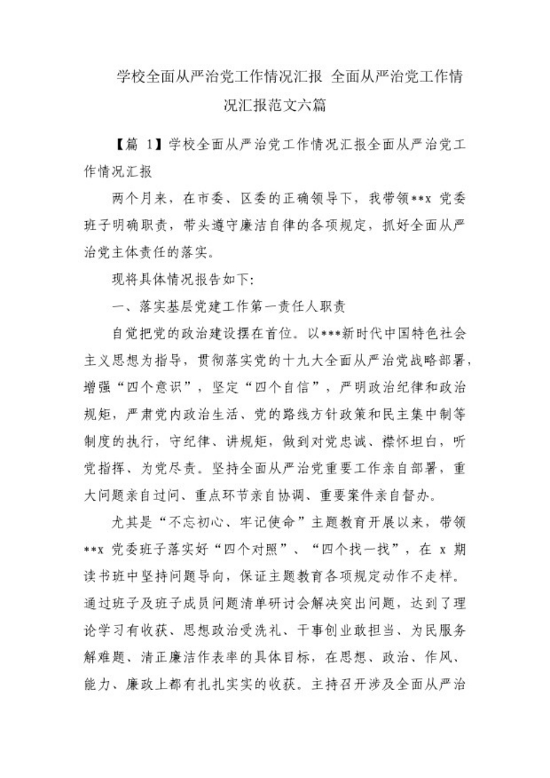 首页党建资料计划总结学校全面从严治党工作情况汇报