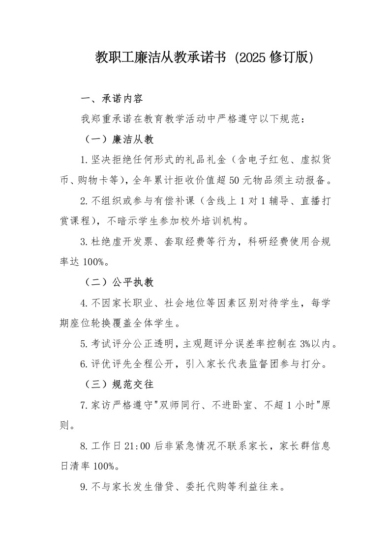 首页党建资料计划总结教职工廉洁从教承诺书(2025修订版)