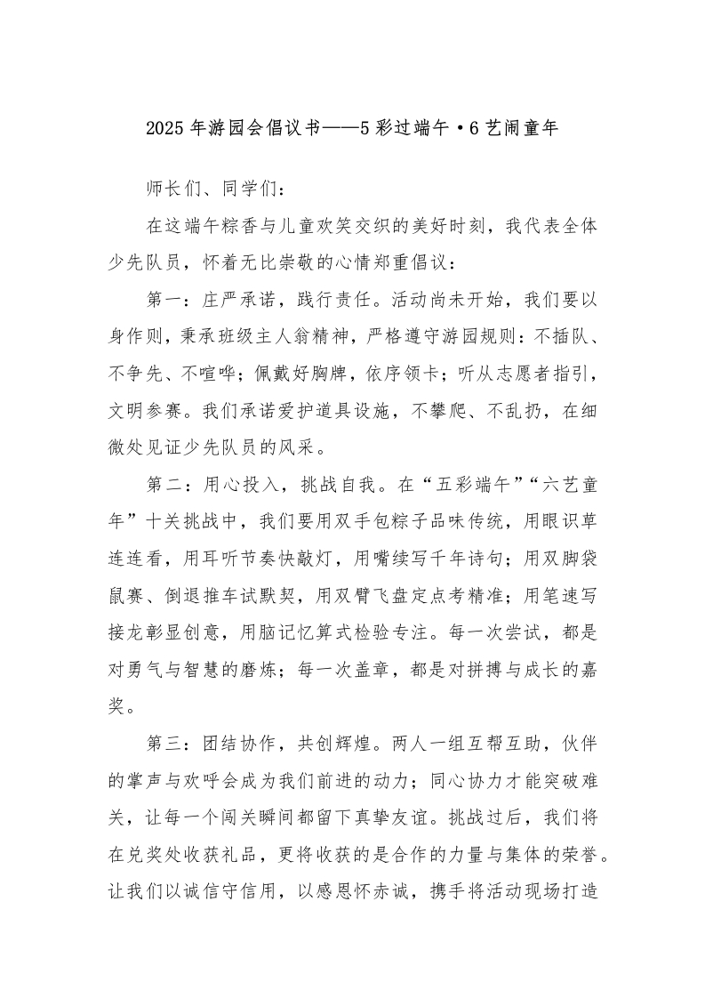 2025年游园会倡议书—— 5彩过端午·6艺闹童年