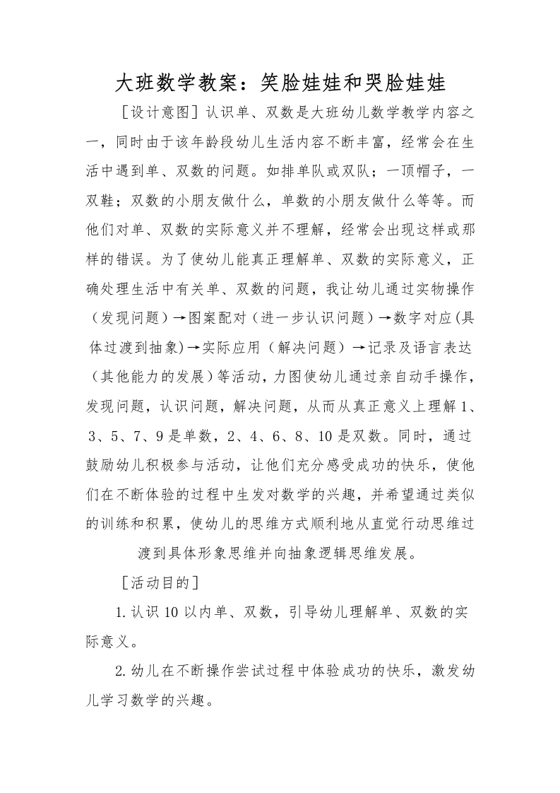 大班数学教案:笑脸娃娃和哭脸娃娃