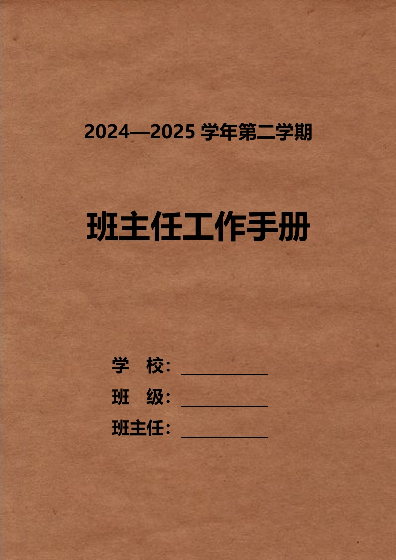 2024一2025学年第二学期班主任工作手册学校:班级:班主任: