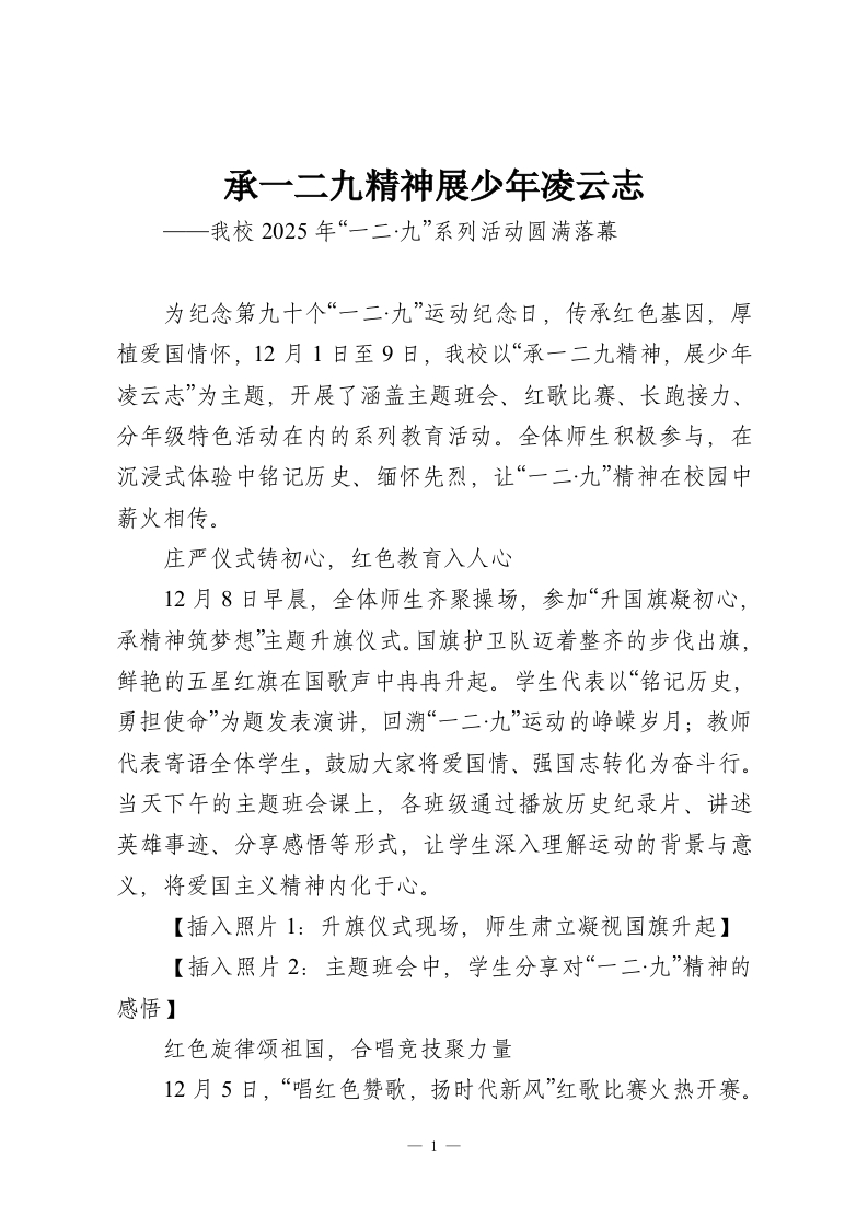 承一二九精神展少年凌云志——我校2025年“一二·九”系列活动圆满落幕