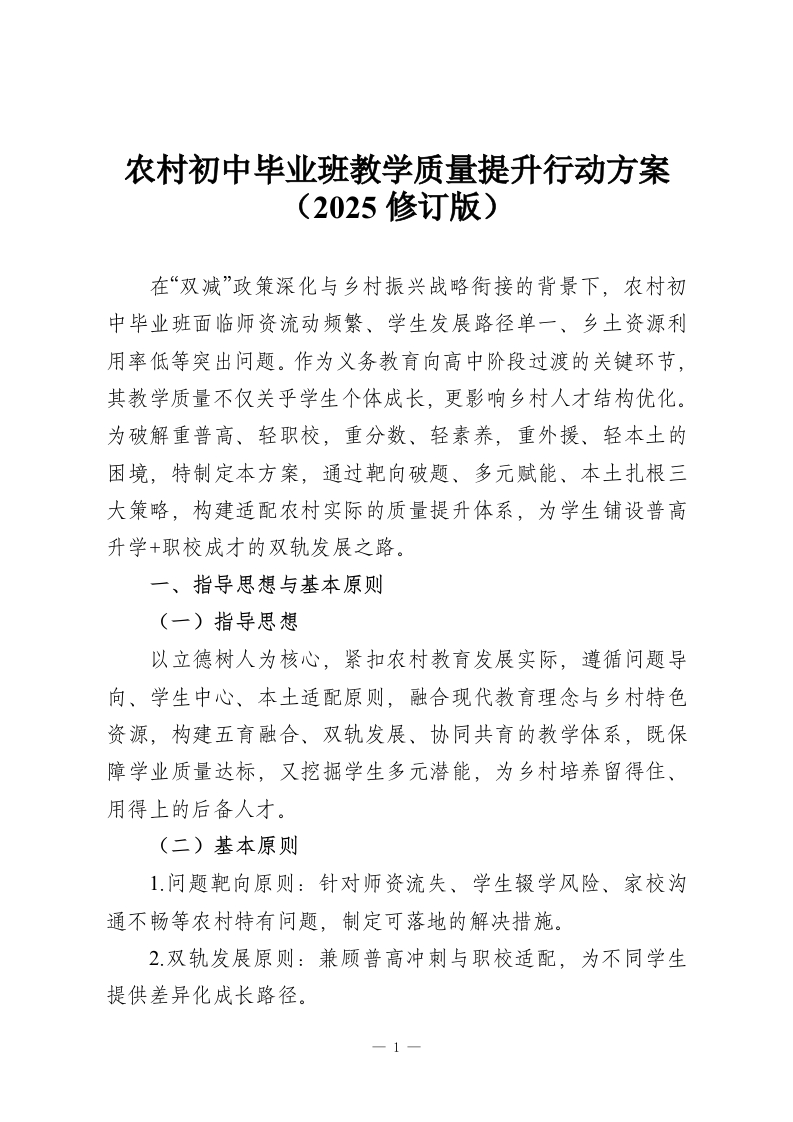 首页教务资料综合材料农村初中毕业班教学质量提升行动方案(2025修订版)