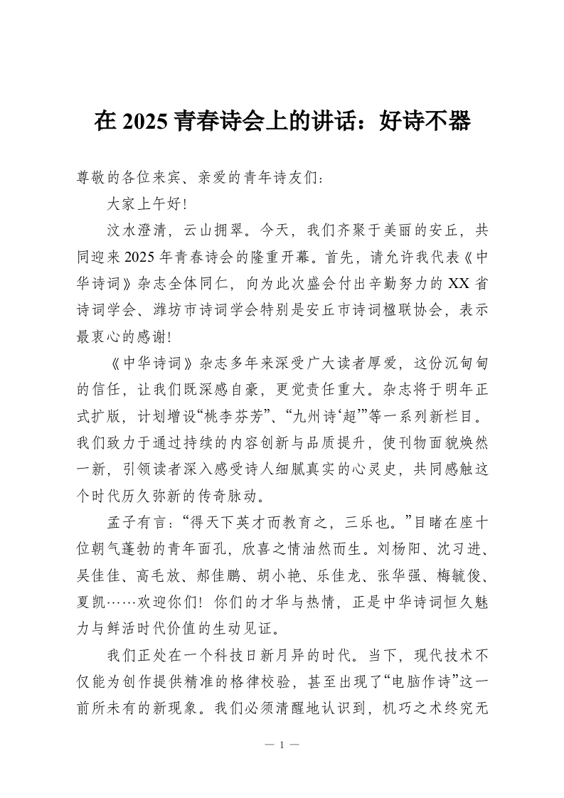 首页教务资料综合材料在2025青春诗会上的讲话:好诗不器