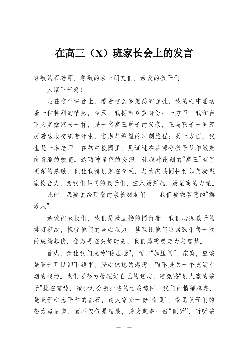 首页教务资料综合材料在高三(X)班家长会上的发言