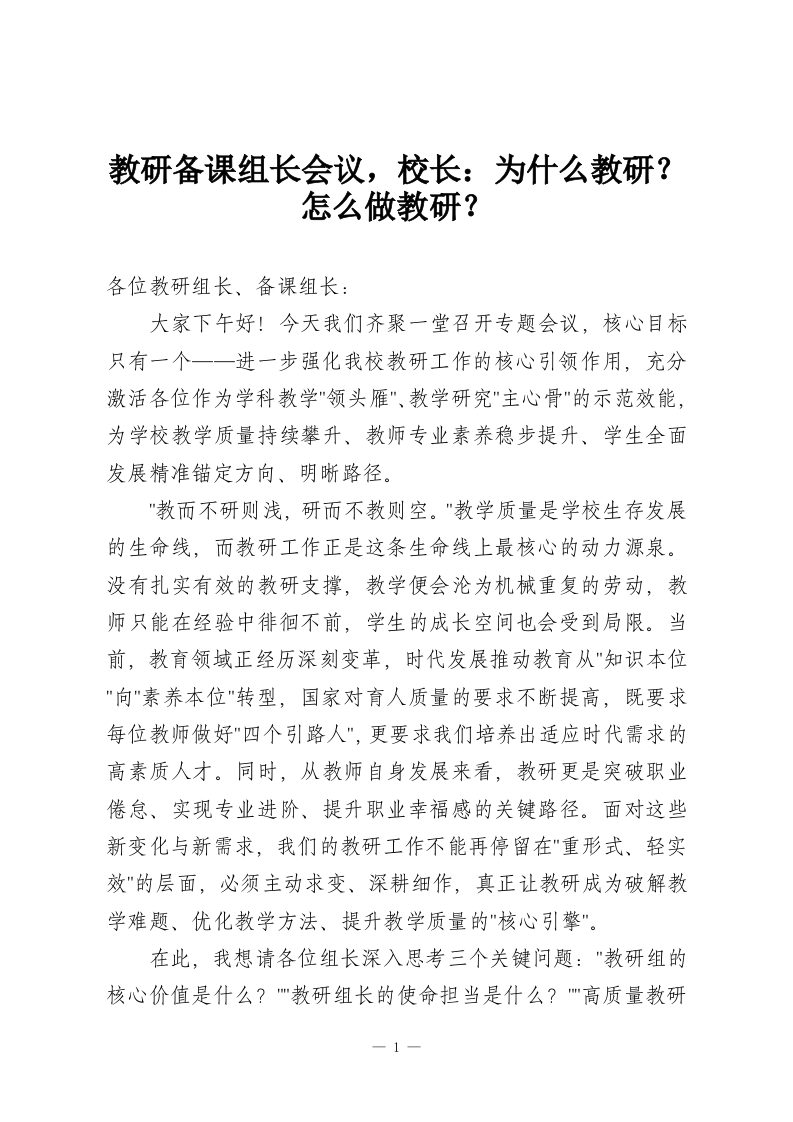 教研备课组长会议,校长:为什么教研?怎么做教研?