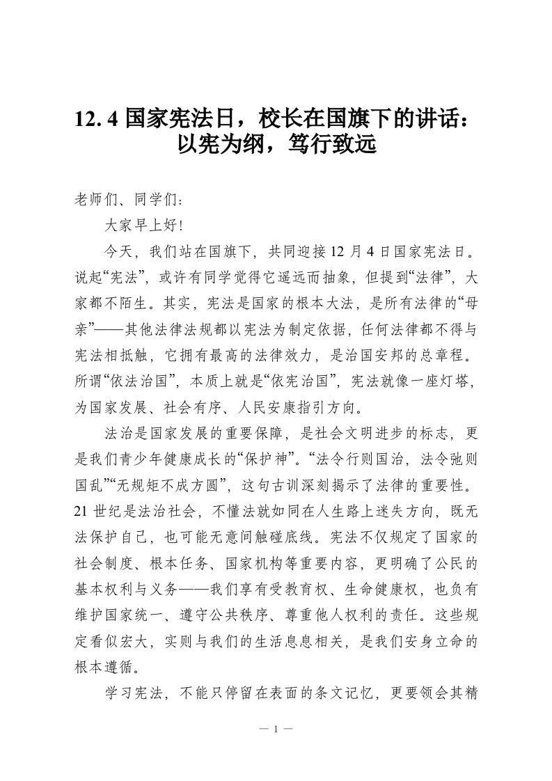 12.4国家宪法日,校长在国旗下的讲话:以宪为纲,笃行致远