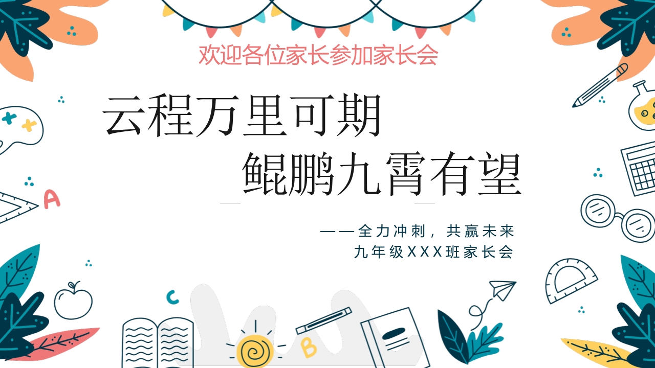 欢迎各位家长参加家长会云程万里可期鲲鹏九霄有望全力冲刺,共赢未来九年级XXX班家长会